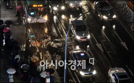 [아시아경제 최우창 기자]눈과 비가 동반되어 내린 5일 서울 양재역 사거리에서 시민들이 우산을 쓴 버스를 기다리고 있다.최우창 기자 smicer@<ⓒ세계를 보는 창 경제를 보는 눈, 아시아경제(www.asiae.co.kr) 무단전재 배포금지>