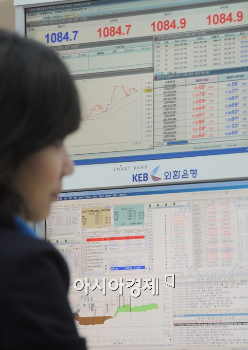 [아시아경제 백소아 기자] 6일 서울 중구 외환은행 본점 딜링룸에서 딜러들이 외환시장 업무를 보고 있다. 이날 원·달러 환율은 전날보다 2원 하락한 1085.0원에 거래가 시작되었다.백소아 기자 sharp2046@<ⓒ세계를 보는 창 경제를 보는 눈, 아시아경제(www.asiae.co.kr) 무단전재 배포금지>백소아 기자 sharp2046@<ⓒ아시아 대표 석간 '아시아경제' (www.newsva.co.kr) 무단전재 배포금지>