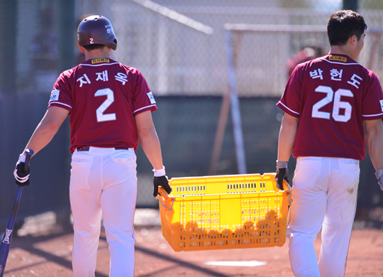 [아시아경제] 넥센 히어로즈가 지난달 20일부터 미국 애리조나에서 스프링캠프를 진행하는 가운데 지재옥과 박헌도가 공을 나르고 있다. [사진=넥센 히어로즈 제공]정재훈 기자 roze@<ⓒ세계를 보는 창 경제를 보는 눈, 아시아경제(www.asiae.co.kr) 무단전재 배포금지>