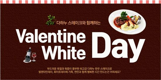 [아시아경제 김대섭 기자] 한우전문쇼핑몰 다하누몰은 내달 15일까지 스테이크 특별 할인 행사를 진행한다고 12일 밝혔다.이번 행사는 다가오는 발렌타인데이와 화이트데이를 맞아 기획됐다. 1등급 안심 스테이크(300g)를 기존 2만5600원에서 23% 할인된 가격인 1만9800원에 판매할 예정이다. 1+등급은 2만2400원에 제공된다.또 등심 스테이크(300g)는 전 등급 27% 할인한다. 1등급(2만1900원), 1+등급(2만4900원), 1++등급(2만9200원)에 판매할 계획이다. 이와 함께 1등급 채끝 스테이크(300g)는 기존 가격 보다 21% 할인된 2만400원에 제공할 예정이다. 자세한 내용은 다하누몰 사이트(www.dahanoomall.com)를 참고하면 된다. 김대섭 기자 joas11@<ⓒ세계를 보는 창 경제를 보는 눈, 아시아경제(www.asiae.co.kr) 무단전재 배포금지>