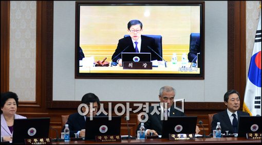 [아시아경제 최우창 기자]12일 오전 서울 세종로 정부서울청사에서 열린 국무회의에서 참석자들이 김황식 국무총리의 모두발언을 영상으로 지켜보고 있다. 김황식 총리는 정부세종청사에서 영상으로 국무회의를 주재했다.최우창 기자 smicer@<ⓒ세계를 보는 창 경제를 보는 눈, 아시아경제(www.asiae.co.kr) 무단전재 배포금지>