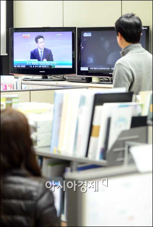 [아시아경제 최우창 기자]북한이 3차 핵실험을 강행한 12일 서울 세종로 정부서울청사 통일부에서 직원들이 뉴스를 시청하고 있다. 한편 통일부는 북한의 3차 핵실험에도 163명이 체류하는 개성공단에 특이 동향은 없다고 밝혔다.최우창 기자 smicer@<ⓒ세계를 보는 창 경제를 보는 눈, 아시아경제(www.asiae.co.kr) 무단전재 배포금지>