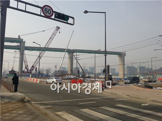 [아시아경제 박미주 기자, 김비아 인턴기자]"요즘 전세 가격이 엄청 올랐어요. 그래도 없어서 못 팔아요."(세종시 첫마을아파트단지 내 세종제일공인 표성수 대표)국무총리실과 국토해양부 등 6개 정부 부처의 세종시 이전이 시작된 후 6개월여가 지나며 전세대란이 더 심화되고 있다. 출퇴근하던 공무원들이 정착하려고 하는 데다 곳곳에 널린 건설현장 투입 인력들이 몰리고 있어서다.14일 KTX오송역에서 세종시로 들어가는 길목 곳곳에는 공사부지임을 알리는 표지판들이 들어서 있었다. '복합환승터미널 예정부지', '행정복합도시 6-4 생활권'은 물론 분양에 들어간 아파트 건설현장도 눈에 들어왔다. 길목 몇 안 되는 상가에는 건축자재점, 건축상담소 등이 입주해 있다.세종청사에 가까워지면 공사현장은 더 늘어난다. 각종 건설자재를 실은 덤프트럭들이 BRT(간선급행버스체계) 차량인 바이모달트램, 버스들과 함께 도로를 누빈다. 타워크레인과 철골구조물들이 벌판을 점령하고 있다. 자연스레 건설현장에 근무하는 건설인력들의 임차수요가 많을 수밖에 없다. 행정중심복합도시건설청에 따르면 2012년 12월 말 기준 현장사무소가 설치된 공공·민간 건설현장은 총 108곳이다. 이곳에 투입되는 건설인력은 하루 평균 9328명에 달한다.세종시 첫마을 인근 토마토공인 대표는 "행복도시 인근 원룸들은 건설근로자들이 많이 살고 있어서 남아있는 물건이 거의 없다"며 "그러다보니 공무원들 중에 원룸을 찾는 사람들은 유성이나 오송 쪽으로 많이 빠져나갈 수밖에 없었다"고 말했다.인근 백공인 관계자는 "건설근로자들이 세종시 원룸 월세수요를 거의 채우고 있다"며 "원룸의 경우 수요가 많아 보증금 500만원에 월세 40만~45만원은 줘야한다"며 "인근 유성 지역과 비교했을 때 가격은 비슷하지만 주변 편의 시설 등을 고려하면 비싼 편"이라고 전했다. 건설근로자들이 세종시 전·월세가격을 올리는 데 단단히 한몫하고 있는 셈이다. 백공인 관계자는 "인근 월세가 싸지 않은 데다 편의시설 등이 제대로 갖춰지지 않아 일부 공무원들은 전세를 생각하기도 한다"면서 "세종시 첫마을아파트에 전세를 구해서 작은 평수에는 혼자 거주하고 큰 평수에는 몇 명이 함께 들어가 살기도 한다"고 했다.금강변서 바라 본 세종시 첫마을아파트 단지 전경.