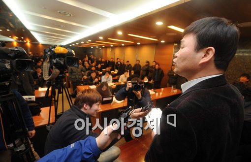 [아시아경제 백소아 기자] 15일 서울 강남구 건설회관에서 열린 '택시산업 발전을 위한 정책토론회'에서 이선주 서울개인택시 조합 대위원이 발언하고 있다. 이날 예정된 토론회는 택시업 종사자 수십 명이 현장을 점거하고 실질적인 대책을 요구하며 농성을 벌여 진행되지 못했다.백소아 기자 sharp2046@<ⓒ세계를 보는 창 경제를 보는 눈, 아시아경제(www.asiae.co.kr) 무단전재 배포금지>