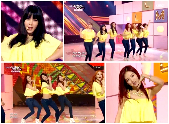 [아시아경제 이금준 기자]걸그룹 레인보우가 한층 업그레이드된 귀여움으로 다시 한 번 남성 팬들의 마음을 뒤흔들었다.레인보우는 15일 오후 방송한 KBS2 '뮤직뱅크'에 출연, 앞서 선보인 섹시한 의상의 '골든 터치(Golden Touch)'와 다른 노란빛의 깜찍한 의상을 선보였다. 특히 사랑하는 남자를 향한 순수한 마음을 깜찍한 안무로 표현해 더욱 귀여운 매력을 뽐냈다.타이틀곡 '텔미 텔미(Tell me Tell me)'는 한국과 미국 작곡가 2명으로 구성된 '레드 로켓(RED ROCKET)'이 만든 곡으로 힙합 비트를 중심으로 통통 튀는 가사와 섬세한 스트링 사운드가 가미된 댄스곡이다. 신나는 리듬과 중독성 있는 후렴구는 이 곡의 가장 큰 특징으로 꼽힌다.한편 이날 '뮤직뱅크'에는 씨엔블루, 인피니트 H, 씨스타19, 허각, 투윤, 배치기, 레인보우, 비에이피, 노브레인, 알리, DMTN, 에어플레인, 나인뮤지스, 미스터미스터, 장희영, 투엑스, 크레용팝, 익사이트, 뉴이스트, 다소니 등이 출연했다.이금준 기자 music@<ⓒ아시아경제 & 스투닷컴(stoo.com)이 만드는 온오프라인 연예뉴스>