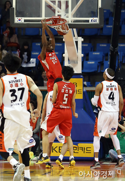 [아시아경제 정재훈 기자] 15일 오후 잠실학생체육관에서 열린 'KB국민카드 2012~2013 프로농구' 서울 SK 나이츠와 인천 전자랜드 엘리펀츠의 경기에서 SK 헤인즈가 덩크슛을 성공시키고 있다.정재훈 기자 roze@<ⓒ세계를 보는 창 경제를 보는 눈, 아시아경제(www.asiae.co.kr) 무단전재 배포금지>
