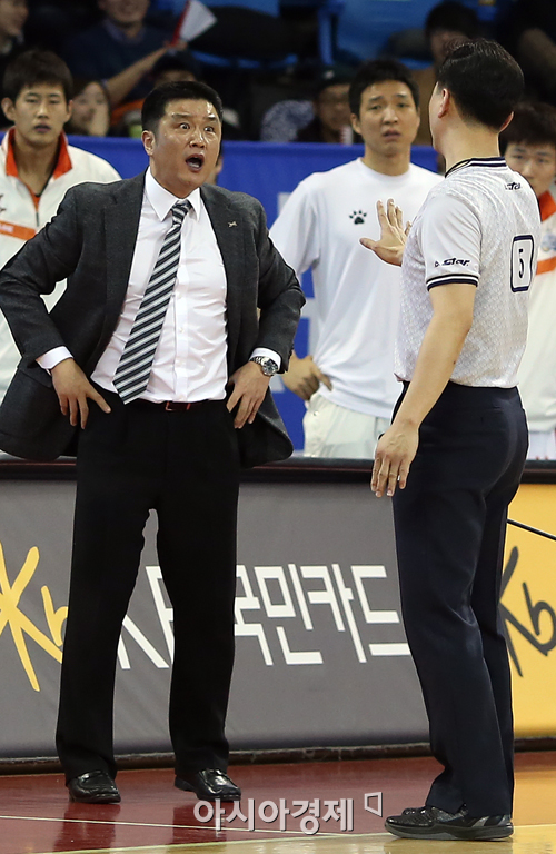 [아시아경제 정재훈 기자] 15일 오후 잠실학생체육관에서 열린 'KB국민카드 2012~2013 프로농구' 서울 SK 나이츠와 인천 전자랜드 엘리펀츠의 경기에서 전자랜드 유도훈 감독이 심판 판정에 항의하고 있다.정재훈 기자 roze@<ⓒ세계를 보는 창 경제를 보는 눈, 아시아경제(www.asiae.co.kr) 무단전재 배포금지>