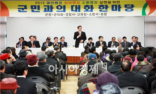 지난해 열린 곡성 군민과 대화 한마당에서 허남석 곡성군수가 인사말을 하고 있다.
