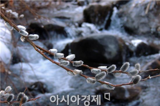 대동강 얼음물도 풀린다는 우수(雨水)를 하루 앞둔 17일 광주 북구 충효동 풍암정 앞 무등산 계곡에 버들개지가 겨우내 내린 눈을 뚫고 따스한 봄볕을 온몸으로 받고 있다. 노해섭 기자 nogary@<ⓒ세계를 보는 창 경제를 보는 눈, 아시아경제(www.asiae.co.kr) 무단전재 배포금지>