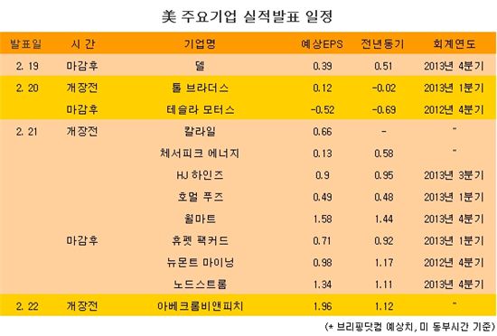 [표] 美 주요기업 실적발표 일정
