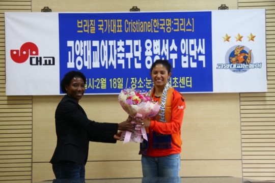 [아시아경제 전성호 기자]브라질 여자 축구 국가대표 크리스가 WK리그 고양 대교에 입단했다. 대교는 러시아 로시얀카에서 뛰던 크리스를 영입했다고 18일 밝혔다. 크리스는 2003년부터 브라질 대표팀에서 활약한 공격수. 화려한 개인기와 돌파력, 폭발적 슈팅이 장점으로 꼽힌다.크리스는 세계 최고 선수로 불리는 마르타와 더불어 브라질 여자축구의 스타로 손꼽힌다. A매치 45경기에 출전해 31골을 넣었으며, 올림픽 3회, 월드컵 2회, 남미클럽선수권 3회 출전 등 화려한 경력을 자랑한다. 볼프스부르크(독일), 코린치안스(브라질), 시카고 레드스타스(미국) 등 각국 명문팀을 두루 거치기도 했다. 이로써 대교는 기존의 쁘레치냐와 더불어 최강의 브라질 공격 듀오를 보유하게 됐다. 아울러 차연희, 이장미, 심서연 등 대표팀 출신 선수들도 건재해 올 시즌 통산 네 번째 우승에 대한 전망을 밝게 했다.크리스는 "한국은 처음이라 설렘이 크다"라며 "대교에서 동료들과 힘을 합쳐 우승을 달성하겠다"라는 당찬 포부를 밝혔다. 서명권 대교그룹 사회공헌실장 겸 스포츠단장은 "크리스의 돌파력과 슈팅력은 가히 최고"라고 평가한 뒤 "한국 무대에 빨리 적응해 최고의 기량을 발휘할 수 있도록 적극 지원하겠다"라고 약속했다. 전성호 기자 spree8@<ⓒ세계를 보는 창 경제를 보는 눈, 아시아경제(www.asiae.co.kr) 무단전재 배포금지>