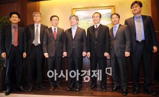 [아시아경제 백소아 기자] 김중수 한국은행 총재가 20일 서울 중구 한국은행에서 열린 경제동향간담회에서 참석한 경제전문가들과 기념촬영을 하고 있다.백소아 기자 sharp2046@<ⓒ세계를 보는 창 경제를 보는 눈, 아시아경제(www.asiae.co.kr) 무단전재 배포금지>