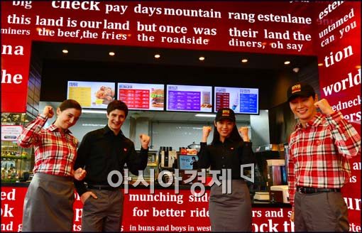 [아시아경제 최우창 기자]롯데리아가 21일 서울 롯데리아 강남우성사거리점에서 세계 시장을 공략할 신규 인테리어 매장 및 직원 유니폼을 선보인 가운데 모델들이 새로운 유니폼을 입고 신컨셉 인터리어를 공개하고 있다.최우창 기자 smicer@<ⓒ세계를 보는 창 경제를 보는 눈, 아시아경제(www.asiae.co.kr) 무단전재 배포금지>