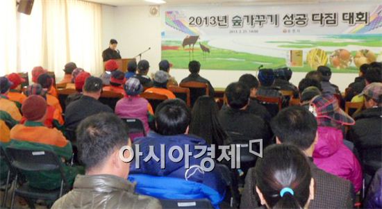 전남 순천시는 지난 21일 농업기술센터 대회의실에서 ‘숲 가꾸기 성공 다짐 대회’를 가졌다. 이날 다짐 대회에는 산림작업단, 산림바이오매스 수집단, 산림사업 법인 대표 등 100여명이 참석했다. 다짐 대회는 후손들에게 건강한 숲을 물려주기 위해 지역 환경과 기능에 맞는 숲 가꾸기에 최선을 다하기로 결의하고, 품질 높은 숲 가꾸기 작업방법 토론과 산업안전보건공단 전문가를 초빙, 안전사고 예방을 위한 특별 교육도 함께 실시했다.한편 시는 산림자원 조성을 위해 올 해 숲 가꾸기 2,870ha, 조림사업 221ha를 추진한다. 노해섭 기자 nogary@<ⓒ세계를 보는 창 경제를 보는 눈, 아시아경제(www.asiae.co.kr) 무단전재 배포금지>