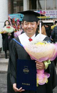 최영호 광주시 남구청장이 22일 광주대학교 28회 졸업식에서 사회복지학 석사학위를 취득했다. 최 청장은 구예산 중 53%를 차지하는 복지예산의 효율적으로 사용과 복지사각지대 해소 등을 놓고 고민하다 이에 대한 전문적 소양을 쌓기 위해 지난 2011년 사회복지전문대학원 입학했다. 업무에 바쁜 중에도 주경야독해 온 최 청장은 그 동안 주 2회 대학원 강의가 있는 날 저녁은 되도록 일정을 잡지 않고 학업에 충실히 임하는 만학도의 모습을 보였다. 최 청장은 “바쁜 일정 속에서도 틈틈이 공부하면서 사회복지 공부 시작하기를 잘했다는 생각을 했다”며 “사회복지 전문지식을 실무와 접목시켜 보다 내실 있는 주민복지 정책이 이루어지도록 노력하겠다”고 말했다. 노해섭 기자 nogary@<ⓒ세계를 보는 창 경제를 보는 눈, 아시아경제(www.asiae.co.kr) 무단전재 배포금지>