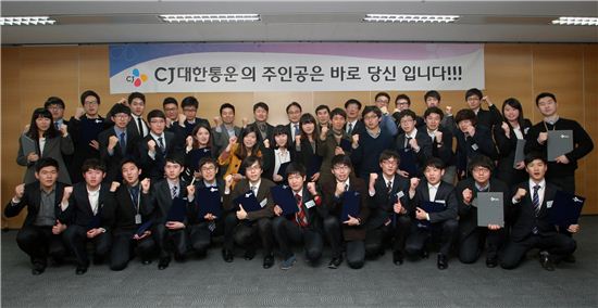 CJ대한통운은 지난 22일 맞춤형 물류전문인력 양성을 위한 산학협력제도 'CJ 물류Track' 동계 인턴십 과정 수료식을 실시했다고 25일 밝혔다. 서울 중구 쌍림동 CJ제일제당센터에서 열린 수료식 행사에서 인턴십 과정에 참여했던 학생들 35명과 관계자들이 기념촬영을 하고 있다.
