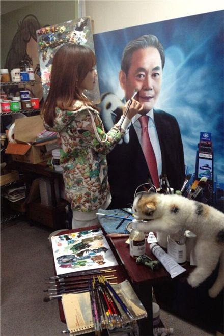 ▲ 팝아티스트 낸시랭이 이건희 삼성그룹 회장을 유쾌하게 표현한 '쁘띠거니' 작업 현장을 공개했다.