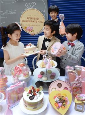 [아시아경제 오주연 기자] SPC그룹의 파리바게뜨는 오는 14일 화이트데이를 맞아 관련 제품 100여종을 출시했다고 4일 밝혔다. 이번 파리바게뜨 화이트데이 제품은 컵케이크, 아이스크림 등 ‘달콤한 디저트’를 형상화한 패키지와 플라워장식 등 화려한 디테일로 여성들의 눈높이를 맞춘 것이 특징이다. 또한 캔디 외에 쿠키, 초콜릿 등 한층 다양한 세트구성과 합리적인 가격으로 소비자의 만족감을 높였다.아이스크림 패키지에 과일맛캔디를 담은 ‘사랑은 달콤하게’와 고깔모자 패키지에 롤리팝 캔디와 과일맛 캔디를 넣은 ‘사랑이 롤롤’은 이색 디자인으로 보는 맛도 즐겁다. 또한 ‘달콤한 레시피’는 컵받침이 있는 고급스런 컵케이크 용기가 한층 로맨틱한 분위기를 연출, 부담 없는 가격대로 우정 선물에 좋다.파리바게뜨는 오는 14일까지 화이트데이 기념 이벤트를 진행한다. ‘카카오톡 선물하기’로 화이트데이 기획제품이나 케이크를 구입하면 선착순 3만명에게 해피콘 2000원권을 증정하고 추첨을 통해 ‘아이패드 미니’ 등을 경품으로 제공한다. 파리바게뜨 관계자는 “남성들의 선물 대상이 늘어난 만큼 1만원 이하 중저가 제품을 강화해 선물에 대한 부담을 줄이고자 노력했다”며 “화이트데이에 ‘센스남’이 될 수 있도록 파리바게뜨가 조금이나마 도움이 되길 바란다”고 전했다.오주연 기자 moon170@<ⓒ세계를 보는 창 경제를 보는 눈, 아시아경제(www.asiae.co.kr) 무단전재 배포금지>