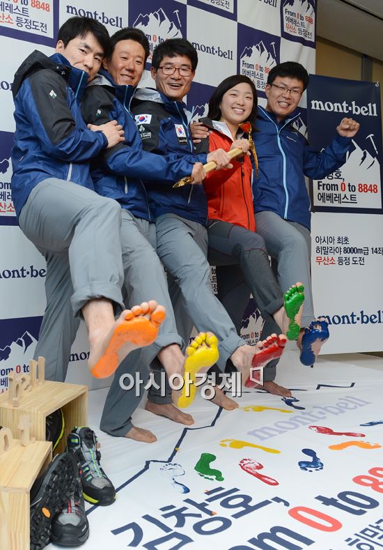 [아시아경제 정재훈 기자] 아시아 최초로 히말라야 8000m급 14좌 무산소 완등에 도전하는 산악인 김창호 대장의 '2013 한국 에베레스트-로체 원정대'가 6일 LS용산타워에서 열린 출정식에 앞서 화이팅을 외치고 있다.정재훈 기자 roze@<ⓒ세계를 보는 창 경제를 보는 눈, 아시아경제(www.asiae.co.kr) 무단전재 배포금지>