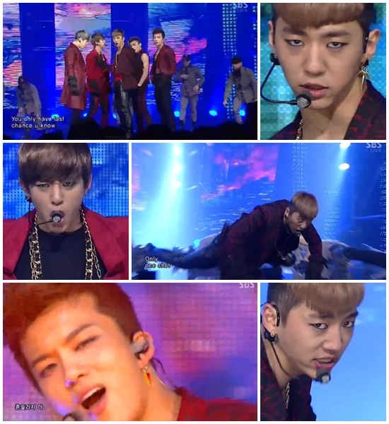 [아시아경제 최준용 기자]남성그룹 B.A.P가 팀 특유의 강렬한 카리스마로 화려한 무대를 선사했다.B.A.P는 10일 오후 방송한 SBS '인기가요'에 출연해 새 앨범 타이틀곡 '원 샷(One Shot)'을 열창했다. 이들은 한층 강렬해진 퍼포먼스는 물론 안정적인 가창력과 래핑을 뽐내며 팬들의 박수와 환호를 자아냈다.'원 샷'은 웅장한 오케스트라와 멤버들의 래핑과 가창력이 돋보이는 곡. 앞서 '워리어'와 '파워'로 B.A.P와 호흡을 맞췄던 강지원, 김기범 듀오는 현실적이고 진지한 의미를 부여한 강렬한 힙합곡을 탄생시켰다.한편 이날 ‘인기가요’에는 샤이니, 2AM, 유키스, 레인보우, 틴탑, 김태우, 거미, B.A.P, 버벌진트, 뉴이스트, 투엑스, 빅스, 마이네임, 라니아, 디유닛, 스피드, 다소니, 레이디스코드, KK, 강민희(미스에스), 제니(Gavy NJ) 등이 참여해 멋진 무대를 꾸몄다. 최준용 기자 cjy@<ⓒ아시아경제 & 스투닷컴(stoo.com)이 만드는 온오프라인 연예뉴스>