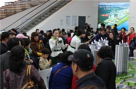 지난 8일 부산 북구에서 개관한 GS건설의 ‘신화명리버뷰자이’ 견본주택에 나흘간 1만여명의 방문객이 몰렸다. <br />