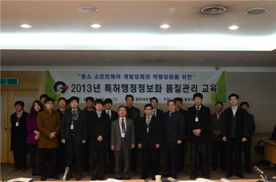 2013년 특허행정정보화 품질관리교육 참가자들이 변훈석(앞줄 왼쪽에서 4번째) 특허청 정보기획국장 등 관계자들과 기념사진을 찍고 있다.