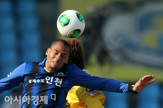 [성남=아시아경제 정재훈 기자] 16일 오후 성남 탄천종합운동장에서 열린 '현대 오일뱅크 K리그 클래식 2013' 성남 일화와 인천 유나이티드의 경기에서 디오고가 상대 선수와 헤딩 경합을 벌이고 있다.정재훈 기자 roze@<ⓒ세계를 보는 창 경제를 보는 눈, 아시아경제(www.asiae.co.kr) 무단전재 배포금지>