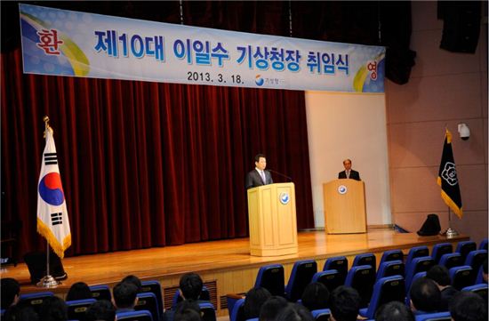 [아시아경제 조민서 기자]이일수 신임 기상청장이 18일 오전 기상청 2층 대강당에서 취임식을 갖고, 제10대 기상청장에 취임했다. 이일수 신임 청장은 취임사에서 "국민을 위한 행정이 아닌, 국민이 원하는 행정을 해야 한다"며 "국민의 생명과 재산을 보호하는 것이 기상청의 기본 임무이며, 기상청이 창조경제의 바탕이 되고, 국민행복의 중심으로 거듭나도록 해야할 것"이라고 포부를 밝혔다.이 청장은 취임식 후 첫 간부회의를 소집해 "정부3.0 시대를 맞아 간부들이 솔선수범하여 내외부와의 벽을 허물 수 있도록 노력할 것"을 강조했다. 또 기상청 내 부서간의 업무 연계와 정보 공유 강화도 당부했다. ◆다음은 취임사 전문존경하는 기상가족 여러분!어제는 온 국민이 바라는 단비가 밤새 내렸습니다. 그리고 김연아 선수가 최고의 점수로 금메달을 목에 걸었습니다. 드디어 이뤄진 정부조직법에 대한 여야합의는 새로운 정부의 출범을 예고하고 있습니다.오늘 이 자리는 저에게는 개인적으로 무한한 영광이면서, 동시에 막중한 책임감을 느끼게 합니다. 지금의 기상청은 그동안 우리 기상청을 키우신 선배님들과 늘 관심과 애정으로 지켜봐 주시는 학계 교수님들, 서로 돕는 동반자로서의 기상산업계 분들과 오늘 이 자리에 계신 여러분, 그리고 여러분의 가족들이 힘을 모아서 세계6위의 선진기상기술을 가지게 되었습니다.이번 박근혜 정부는 '정부3.0' 시대를 제시하고 있습니다. 국민 한 사람 한 사람의 맞춤 행복을 여는 새 시대입니다. 이를 위해서 우리는 국민을 위한 행정이 아닌 국민이 원하는 행정을 하여야 합니다. 국민 행복 시대를 이끄는 선두에는 우리 기상청이 있습니다. 국정 과제를 빛나게 하는 곳이 바로 기상청입니다. 친애하는 기상가족 여러분!저는 선배님들과 여러분들이 이룬 성과를 바탕으로 정확하고 가치 있는 기상정보를 생산하여 신속하게 국민들에게 전달함으로써 생명과 재산을 보호하는 것이 우리의 기본임무라고 생각합니다. 이에 더하여 우리 기상청은 창조경제의 바탕이 되고, 국민 행복의 중심으로 거듭나야 합니다. 수평 수직간의 흐름이 원활하고, 즐겁게 일하는 기관으로 만들어 나가겠습니다. 이를 위하여 첫째, 우리는 기본에 충실해야 합니다. 우리가 해야 할 일은 분명합니다. 위험기상으로부터 국민이 안심하고 생활할 수 있도록 가치있는 기상정보와 지진정보를 정확하고 신속하게 전달하는 것입니다. 이와 더불어 국민이 필요로 하는 기후예측정보로 우리나라의 경제 발전과 국민의 삶의 질 향상에 기여하는 것입니다. 우리 기상청만의 재산인 기상기후정보, IT기술능력, 기상 네트워크를 바탕으로 전국의 기상관서가 살아있는 서비스를 하는 것이 우리의 기본 임무입니다. 이러한 기본 임무 수행에 조금의 빈틈도 없도록 하여야 할 것입니다.우리는 참 열심히 일합니다. 하지만 제대로 일하는 모습이 부족한 부분도 있습니다. 이왕 열심히 하는 것이라면 하는 일에 의미가 무엇인지를 파악하여 제대로 일하는 조직이 되어야 할 것입니다. 둘째, 기상기후 산업은 창조경제인 동시에 일자리 창출이 가능한 신성장 동력산업입니다. 기상기후 분야가 국가의 창조경제를 이끌 수 있습니다. 빅데이터인 기후정보 활용은 신산업 창출과 함께 기존 산업에 활력을 불어넣는 창조경제의 원동력이 됩니다. 기상산업은 새로운 수출 산업으로 성장이 가능합니다. 그동안 차곡차곡 쌓은 세계적인 기상기술력으로 해외시장에서의 전문 컨설팅과 이를 바탕으로 기상장비 수출까지 가능한 산업으로 확대할 수 있습니다. 이러한 신산업 창출, 기상산업의 확대를 통해 일자리 창출이 가능한 새로운 국가 성장 동력으로 키워야 합니다. 셋째, 외부의 벽, 내부의 칸막이를 허물어야 합니다. 우리가 하는 일을 정확하게 알려야 합니다. 우리가 생산한 기상, 지진정보를 국민들에게 정확하게 알려야 합니다. 우리가 하고자 하는 일이 무엇인지 어떤 일을 하는지 어떤 일을 할 수 있는지 국민과 언론, 정부 부처, 학계, 산업계에 정확하게 알려야 합니다. 이것은 우리가 일하는 이유이며, 존재의 이유이고 보람입니다.이러한 것들이 외부와의 벽을 허무는 것이라면 내부의 칸막이 제거는 기관 내 원활한 의사소통을 말합니다. 부서와 부서간의 의사전달, 상급자와 하급자의 의사전달,동료 간의 의사전달이 막힘없이 흐를 수 있도록 노력하여야 하겠습니다. 언로의 문이 닫히고 오해가 일어나는 이런 일들은 분명히 극복해야할 내부소통입니다. 넷째, 조직의 내실을 다지고자 합니다. 저는 여러분들의 복지에 최선을 다하겠습니다. 직장이 행복해야 합니다. 직장이 즐거워야 합니다. 즐겁게 일해야 업무의 효율성이 높아집니다. 우리는 그동안 보여주는 전시행정에 급급하지는 않았습니까. 뒤돌아 볼 시기입니다. 행사 위주, 보여주기 위한 행정에서 의미를 부여하고 보람을 느낄 수 있는 조직문화를 만들어 나가겠습니다. 즐거운 조직 문화와 공직윤리는 같은 것입니다. 불미스러운 일이 생기면 조직 전체가 우울해 집니다. 행정 신뢰도, 국민 신뢰도가 떨어지면 우리 기상정보의 신뢰도도 떨어집니다.