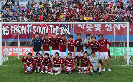 [아시아경제 김흥순 기자]프로축구 선수들과 경기장을 찾은 팬들이 가까이서 마주할 수 있는 '만남의 장'이 열린다. 한국프로축구연맹(총재 권오갑)은 축구장을 찾은 관중들이 선수들과 직접 만날 수 있는 '밀착형 스킨십 팬서비스'를 마련한다고 19일 밝혔다. K리그 클래식(1부 리그) 14구단과 K리그 챌린지(2부 리그) 8구단이 홈팀 승리 시 경기에 뛴 선수들 위주로 팬들과 만날 수 있는 프로그램을 마련, 홈 관중들과 승리의 기쁨을 함께하는 방식이다. 선수들은 포토타임, 팬 사인회 등을 통해 응원해준 관중들에게 감사의 뜻을 전한다. 이미 활발한 팬서비스로 관중들의 호응을 얻고 있는 구단들도 있다. 제주는 지난해부터 '오늘의 선수' 1명을 선정, 매 홈경기 후 1시간가량 팬들과 함께 포토타임을 갖는다. 대전은 승리 시 선수단 전원이 서포터스 석 앞에서 단체사진을 찍는 이벤트를 진행하고 있다. 연맹은 "축구장을 찾은 관중들의 만족도를 높여 재방문을 유도하고, 더 많은 팬들의 관심을 유도하기 위해 '스킨십 팬서비스'를 강화할 예정"이라고 약속했다. [사진=한국프로축구연맹 제공]김흥순 기자 sport@<ⓒ세계를 보는 창 경제를 보는 눈, 아시아경제(www.asiae.co.kr) 무단전재 배포금지>