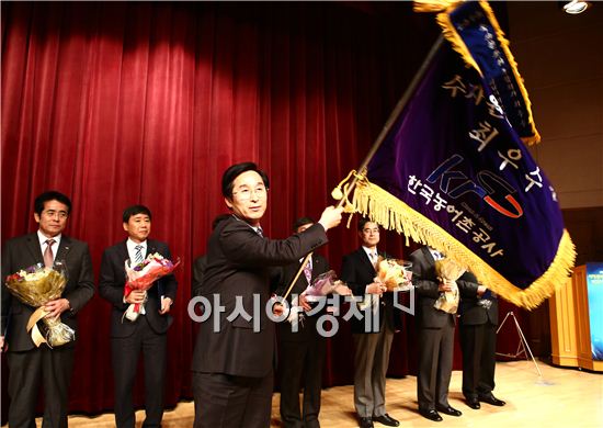 한국농어촌공사는 최근 본사 인재개발원에서 ‘제21회 세계물의 날’ 기념식을 갖고 수자원관리종합평가에서 전국 1위를 차지한 전남지역본부 김행윤 본부장에게 표창기를 수여했다고 24일 밝혔다. ‘전 지구적 패러다임, 물-식량-에너지’라는 주제로 열린 이날 기념식에는 정부, 국회, 농업유관기관, 물관련 전문가 등 400여명이 참석했다.이날 행사에서는 또 박은경 외교통상부 수자원 협력대사의 특별강연과 KCID총회, 농어촌 물포럼 회의 등의 순으로 진행됐다. 이 자리에서는 최우수부서로 선정된 전남본부와 12개 우수부서에 대한 시상과 함께 물관리 유공자로 선정된 12명에 대한 하백(河伯)상이 전달됐다. 김행윤 본부장은 “수자원 관리와 수질관리, 시설물 관리의 지속적이고 적극적 노력을 인정받은 영예로운 수상”이라며 “위기대응 능력 향상과 과학적인 용수관리를 통해 농가소득 증대와 식량안보에 기여하겠다”고 수상 소감을 밝혔다. 정선규 기자 sun@<ⓒ세계를 보는 창 경제를 보는 눈, 아시아경제(www.asiae.co.kr) 무단전재 배포금지>