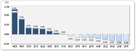 ▲2013년 2월 시도별 순이동률 (자료 : 통계청)