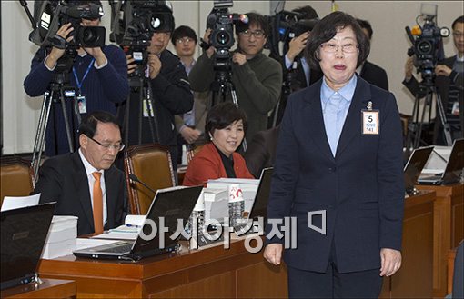 [아시아경제 윤동주 기자] 윤진숙 해양수산부 장관 내정자가 2일 서울 여의도 국회에서 열린 인사청문회에서 증인선서를 마친 후 선언문을 위원장에게 전달후 자리로 돌아가고 있다.윤동주 기자 doso7@<ⓒ세계를 보는 창 경제를 보는 눈, 아시아경제(www.asiae.co.kr) 무단전재 배포금지>