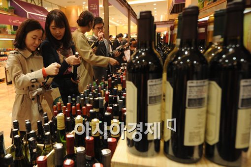 [아시아경제 백소아 기자] 5일 서울 중구 신세계본점에서 열린 '와인 창고 大방출전'에서 시민들이 와인을 고르고 있다. 이번 행사는 국내 대표 수입사가 참여, 총 20만병 물량을 준비했으며, 판매액 기준 80억 원에 이르는 사상 최대 물량이다.백소아 기자 sharp2046@<ⓒ세계를 보는 창 경제를 보는 눈, 아시아경제(www.asiae.co.kr) 무단전재 배포금지>
