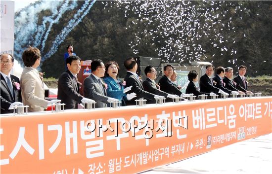 광주시 동구가 문화수도 완공에 대비하고 지역 균형발전의 거점으로 의욕적으로 추진하고 있는 월남 도시개발(1단계)지구 654세대 규모의 아파트 개발 사업이 9일 역사적인 첫 삽을 뜨고 본격적인 공사에 들어갔다.이날 월남지구 아파트 현장에서 에서 박주선 국회의원, 노희용 동구청장 등 각급 사회단체장 및 공사관계자 등 약 500명이 참석한 가운데 월남지구 임대아파트 기공식을 가졌다.광주시 동구청은 민간사업자(호반베르디움)를 적극 유치하여 총 654세대( 구. 24평형 486세대, 30평형 208세대) 아파트가 2015년초 완공(입주)할 계획으로 인구 유입을 통한 동구 발전의 시발점이 될 전망이다.노해섭 기자 nogary@ <ⓒ세계를 보는 창 경제를 보는 눈, 아시아경제(www.asiae.co.kr) 무단전재 배포금지>