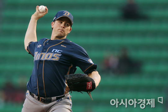[아시아경제 정재훈 기자] 10일 오후 서울 잠실야구장에서 열린 '2013 한국야쿠르트 세븐프로야구' LG 트윈스와 NC 다이노스의 경기. NC 선발투수 에릭이 역투하고 있다.정재훈 기자 roze@<ⓒ세계를 보는 창 경제를 보는 눈, 아시아경제(www.asiae.co.kr) 무단전재 배포금지>