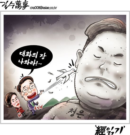 [아경만평]'대화의 장 나와라'…김정은 '經읽기'