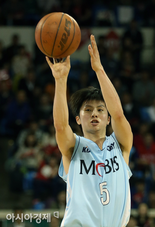 [아시아경제 정재훈 기자] 13일 오후 서울 잠실학생체육관에서 열린 'KB국민카드 2012~2013 프로농구' 서울 SK 나이츠와 울산 모비스 피버스의 챔피언결정전 1차전. 모비스 김시래가 슛을 쏘고 있다. 정재훈 기자 roze@<ⓒ세계를 보는 창 경제를 보는 눈, 아시아경제(www.asiae.co.kr) 무단전재 배포금지>