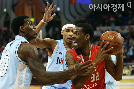 [아시아경제 정재훈 기자] 13일 오후 서울 잠실학생체육관에서 열린 'KB국민카드 2012~2013 프로농구' 서울 SK 나이츠와 울산 모비스 피버스의 챔피언결정전 1차전. SK 헤인즈가 모비스 라틀리프와 문태영에게 더블 마크 당하고 있다.정재훈 기자 roze@<ⓒ세계를 보는 창 경제를 보는 눈, 아시아경제(www.asiae.co.kr) 무단전재 배포금지>