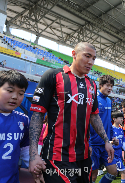 [아시아경제 정재훈 기자] 14일 오후 경기 수원월드컵경기장에서 열린 '현대 오일뱅크 K리그 클래식 2013' 수원 삼성과 FC서울의 슈퍼매치. 차두리가 입장하고 있다.정재훈 기자 roze@<ⓒ세계를 보는 창 경제를 보는 눈, 아시아경제(www.asiae.co.kr) 무단전재 배포금지>