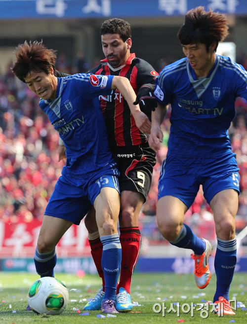 [아시아경제 정재훈 기자] 14일 오후 경기 수원월드컵경기장에서 열린 '현대 오일뱅크 K리그 클래식 2013' 수원 삼성과 FC서울의 슈퍼매치. 홍순학과 에스쿠데로가 몸싸움을 벌이고 있다.정재훈 기자 roze@<ⓒ세계를 보는 창 경제를 보는 눈, 아시아경제(www.asiae.co.kr) 무단전재 배포금지>