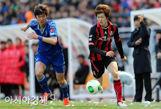 [아시아경제 정재훈 기자] 14일 오후 경기 수원월드컵경기장에서 열린 '현대 오일뱅크 K리그 클래식 2013' 수원 삼성과 FC서울의 슈퍼매치. 고명진이 돌파를 시도하고 있다.정재훈 기자 roze@<ⓒ세계를 보는 창 경제를 보는 눈, 아시아경제(www.asiae.co.kr) 무단전재 배포금지>