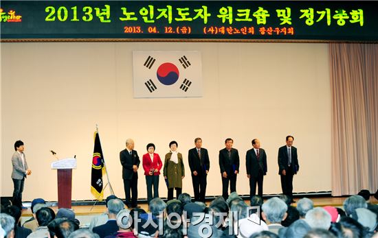 (사)대한노인회 광산구지회(회장 오병채)는 지난 12일 광주시 광산구청 회의실에서 2013년 정기총회를 개최했다. 이날 총회에는 광산구 관내 21개동 경로당 회장 및 회원 등 400여 명이 참석했다. 행사는 2012년 결산보고와 2013년 예산승인, 모범경로당 5개소 시상 그리고 경로당 책임자 리더십 교육 순으로 진행됐다. 현재 광산구에는 345개소의 경로당이 등록돼 있다. 노해섭 기자 nogary@<ⓒ세계를 보는 창 경제를 보는 눈, 아시아경제(www.asiae.co.kr) 무단전재 배포금지>