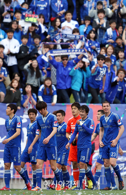 [아시아경제 정재훈 기자] 14일 오후 경기 수원월드컵경기장에서 열린 '현대 오일뱅크 K리그 클래식 2013' 수원 삼성과 FC서울의 슈퍼매치. 양 팀 1골씩 주고받은 채 무승부를 거뒀다.정재훈 기자 roze@<ⓒ세계를 보는 창 경제를 보는 눈, 아시아경제(www.asiae.co.kr) 무단전재 배포금지>