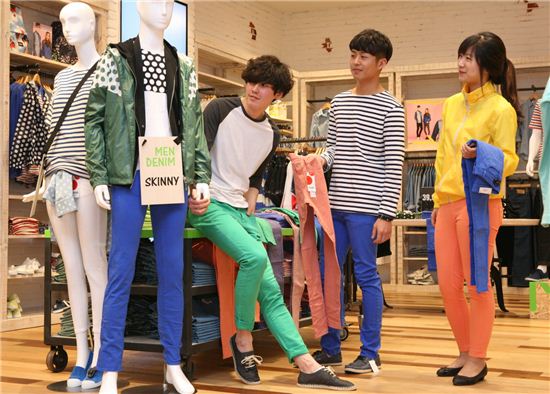 [아시아경제 이초희 기자]소녀시대의 인기가 몰고 온 '컬러 스키니진' 바람이 남성복으로 옮겨오고 있다. 15일 아이파크백화점에 따르면 주황과 파랑, 녹색 등 원색계열 바지의 판매가 올 봄 세일 들어 30% 이상 늘며 인기몰이를 하고 있다. SPA브랜드 '에잇세컨즈'는 아이파크백화점에 지난 2월 중순 문을 연 이래 2달새 500벌의 남성 컬러 바지를 팔았고, 같은 날 문을 연 '바이크리페어샵'에서는 200여벌의 컬러 스키니진이팔렸다. 또 다른 SPA 브랜드 '유니클로'에선 한 달 평균 800벌 이상의 남성 컬러 바지가 판매되고 있다.진노랑(베이지)과청색 일색이었던 남성 바지에 여성 못지 않게 과감한 색채가 물들고 있는 것이다. 이강욱 아이파크백화점 패션팀장은 "남성 바지의 기본 색상과 컬러의 비율이 지난해까지 7:3 정도였다면 올해는 5:5로 비슷해 졌다"며"의류 브랜드들의 신제품 물량도 3배 이상 늘었다"고 말했다.이초희 기자 cho77love@<ⓒ세계를 보는 창 경제를 보는 눈, 아시아경제(www.asiae.co.kr) 무단전재 배포금지>