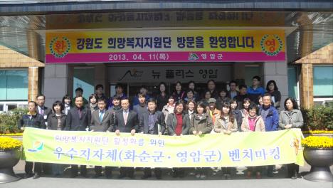 특히, 군은 강원도 희망복지 담당 공무원들이 영암군의 복지정책과 희망복지지원단 운영 현황 및 성과 등에 대한 설명을 듣고 면밀하고 심도 있는 질문을 함으로 사회복지 전문학회 수준의 토론장을 연상케 했다고 전했다.군 관계자는 “상호 의견교환은 물론 희망복지지원단의 발전방안에 대한 서로의 생각과 가치도 함께 공유함으로써 상호간에 의미 있고 상생할 수 있는 좋은 기회가 됐다”며 “영암군의 복지정책 위상을 다시 한 번 느낄 수 있었다”고 전했다.한편 영암군은 지난해 보건복지부 희망복지지원단 업무평가에서 최우수기관, 복지종합평가에서 우수기관으로 선정됐다.정채웅 기자<ⓒ세계를 보는 창 경제를 보는 눈, 아시아경제(www.asiae.co.kr) 무단전재 배포금지>