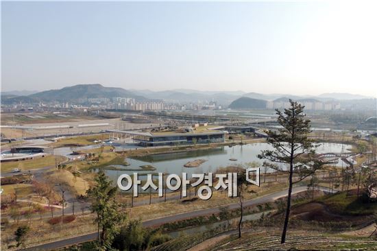 전망대에서 바라본 순천만 정원박람회 습지센터 전경