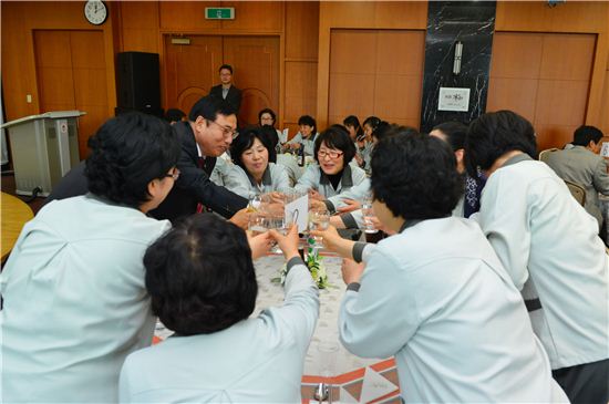 [아시아경제 조민서 기자]서강대학교는 개교 53주년 기념일인 18일 유기풍 총장과 서강대 협력업체 근로자의 간담회를 개최했다. 유 총장은 취임 이후 처음 맞는 개교기념일에 학교를 위해 궂은일을 마다하지 않고 서강에 대한 남다른 사랑으로 나눔을 실천하고 있는 협력업체 근로자와 함께 하는 오찬을 준비했다. 이 날 간담회에는 서강대에서 환경미화(청소), 조경, 영선(건물보수 및 물품운반) 등을 담당하고 있는 근로자 125명과 협력업체 ㈜삼구Inc의 구자관 책임대표사원이 참석했다. 교내 보직자로는 유기풍 총장을 비롯하여 손호철 대학원장, 이인실 대외교류처장, 임채운 기획처장, 사공용 교무처장, 주성영 관리처장, 이인주 총무처장, 전상진 학생문화처장 등이 참석했다. 유기풍 총장은 이 자리에서 헌신적인 노력으로 서강의 실질적인 발전에 기여하고 있는 협력업체 근로자들에게 깊은 감사를 표했다. 또 현재 시행되고 있는 토요일 격주근무를 전면 토요일 휴무제로 대체하되 그에 상응하는 급여 손실이 없도록 기본급에 흡수하고, 식대 보조금 역시 인상할 것을 협력업체 사용자에게 제안할 것이라고 밝혔다. 하조남 분회장은 "현재 서강에서 일하고 있는 근로자들 중에는 길게는 20여년이 넘게 서강에서 일하면서 서강의 비약적인 발전을 직접 지켜본 분들이 계신다. 그 분들 뿐만 아니라 모든 근로자들이 서강에 대한 깊은 애정을 가지고 일하고 있다"고 말했다. 조민서 기자 summer@<ⓒ세계를 보는 창 경제를 보는 눈, 아시아경제(www.asiae.co.kr) 무단전재 배포금지>