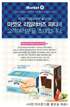 [아시아경제 이현주 기자]오리온은 '마켓오 리얼크래커' 출시를 기념해 다음달 2일 마켓오 레스토랑 압구정점에서 '리얼 러버즈 파티'를 연다고 19일 밝혔다.이번 행사에서는 마켓오 셰프가 리얼크래커를 활용한 스페셜 코스 메뉴 5가지를 시연하고, 제품을 색다르게 즐길 수 있는 다양한 레시피를 소개할 예정이다. 참가자들은 코스 메뉴를 시식하고, 직접 요리해 볼 수 있는 기회도 갖는다. 참가 신청은 오는 29일까지로 마켓오 홈페이지(www.themarketo.com)에서 응모하면 된다. 추첨으로 총 5개팀(10명)을 선정하며, 응모자 전원에게는 마켓오 레스토랑 신메뉴 시식권을 SMS로 증정한다.이현주 기자 ecolhj@<ⓒ세계를 보는 창 경제를 보는 눈, 아시아경제(www.asiae.co.kr) 무단전재 배포금지>