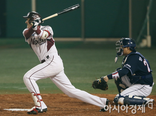[아시아경제 정재훈 기자] 25일 오후 서울 목동야구장에서 열린 '2013 한국야쿠르트 세븐프로야구' 넥센 히어로즈와 두산 베어스의 경기. 4회말 1사 만루 상황 유한준이 2타점 적시타를 쳐내고 있다.정재훈 기자 roze@<ⓒ세계를 보는 창 경제를 보는 눈, 아시아경제(www.asiae.co.kr) 무단전재 배포금지>