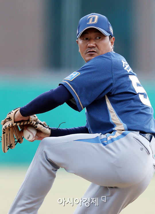 [고양=아시아경제 정재훈 기자] 26일 오후 경기 고양시 경찰청야구장에서 열린 '2013 퓨쳐스리그' 경찰청야구단과 NC다이노스의 경기. NC 선발투수로 나선 손민한이 역투하고 있다.정재훈 기자 roze@<ⓒ세계를 보는 창 경제를 보는 눈, 아시아경제(www.asiae.co.kr) 무단전재 배포금지>